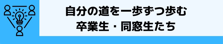 このように自分のしたいことを見つけて、社会でその道に突き進んでいる生徒たちがいます。