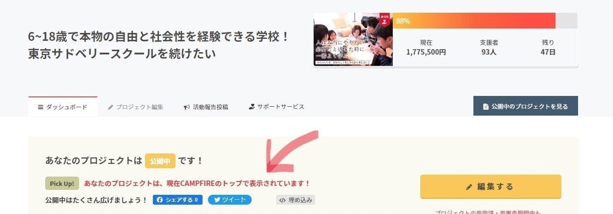 本日、本プロジェクトをCAMPFIREトップでご紹介いただきました!