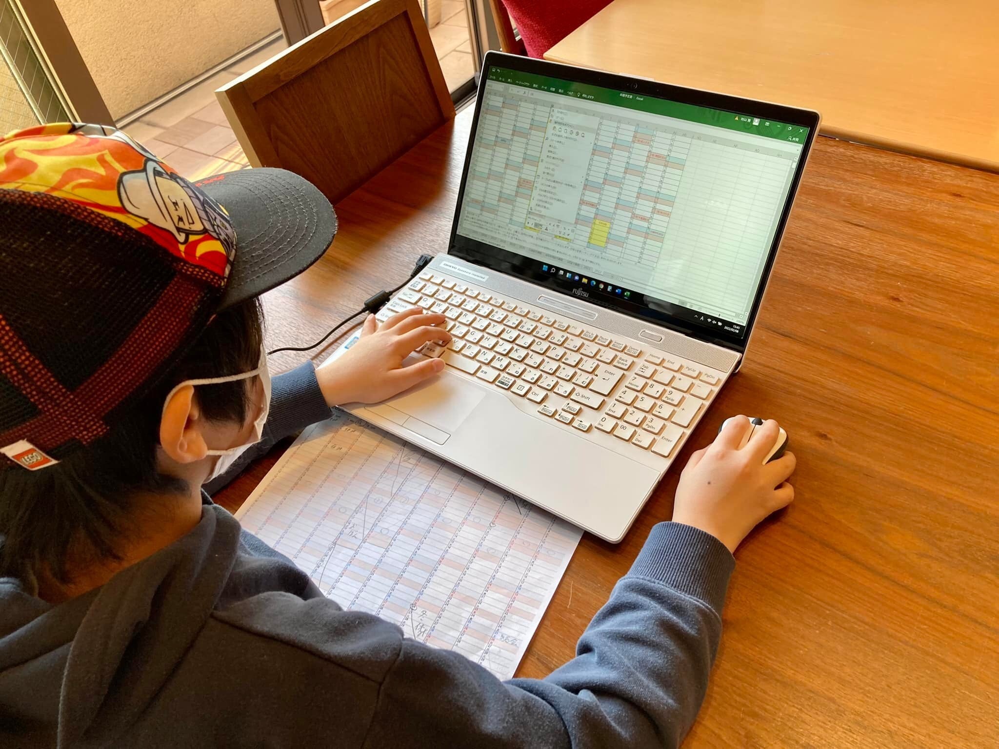 ※写真は、2022年度の1年間のスクール登校日を決めてエクセル表を作っているところ。スクール全員がこの登校日に従って登校します。