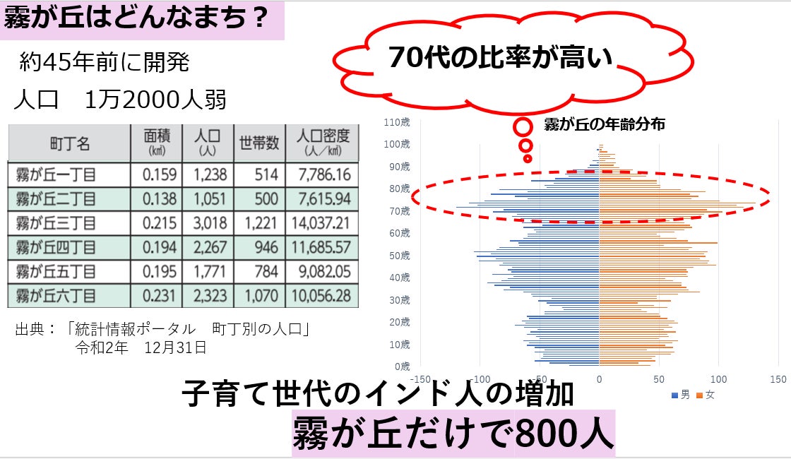 霧が丘は、活動的でやさしいシニア世代と、多彩なインドの人が多い多様な街。