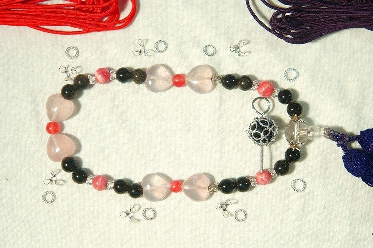 固くもろい半貴石をつないで数珠にした時に、石同士のクッションにもなることは特筆できるかもしれません。