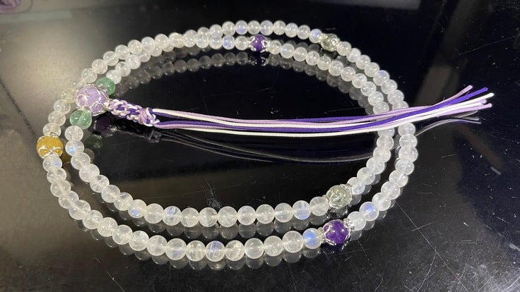 ▼番外の例2・8mmロイヤルブルームーンストーンの華念珠 35万円程度の作品