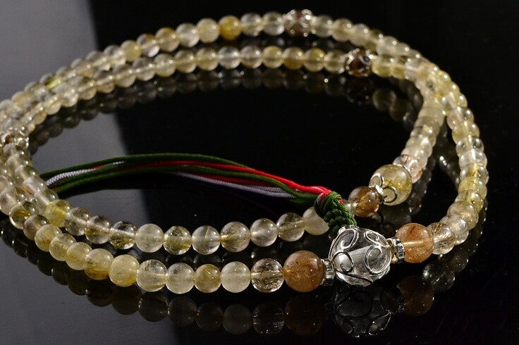 ▼番外の例1・8mmゴールドルチルクォーツの華念珠 20万円程度の作品