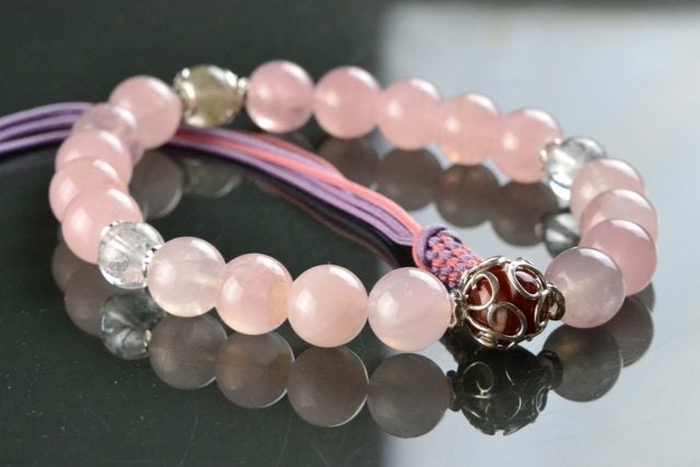 清廉、優しさを備えたローズクォーツとアメジストの華数珠