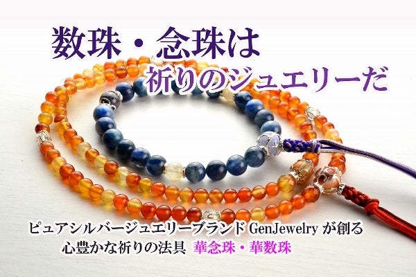 GenJewelryでは2017年より、無添加純銀パーツと半貴石を組み合わせた「ジュエリー念珠」を発売しました。