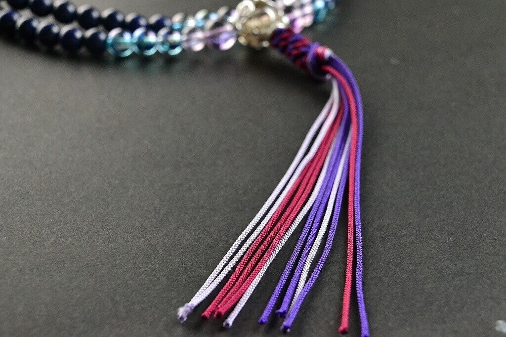 そこで2019年から、独自に切れにくい中糸を開発し、房を正絹組紐に替えて、耐久性の高い「華数珠・華念珠」を完成させました。