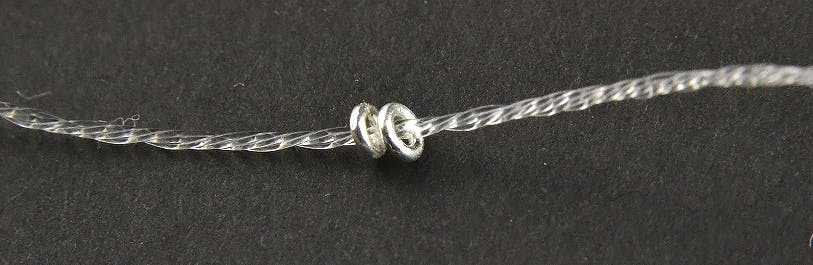 ・中糸には、切れにくく伸びにくい、耐摩擦性、耐水性のある当社開発の数珠紐を使用します。(フロロカーボン製)