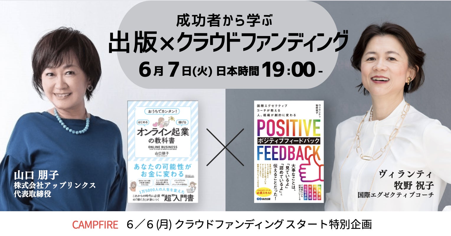 出版はもちろんの事、あらゆる方面で多彩なご経験をお持ちの山口朋子さんと登壇をさせて頂く事になりました。朋子さんも最近のご著者『オンライン起業の教科書』ご出版の際にクラファンで大成功を収められています