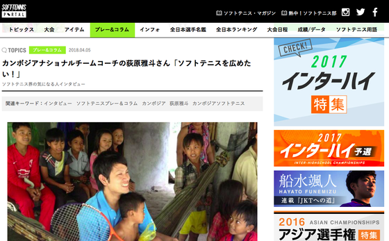 2018/04/05 18:02現在、ソフトテニスの情報を取り扱っている雑誌というのは、ベースボールマガジン社が発行している『ソフトテニスマガジン』しかありません。 今回、ソフトテニス界で気になる人へのインタビューということで、取材をしていただきました! ここでは、僕のカンボジアでの仕事のこと、カンボジアソフトテニスチームのことで、本クラウドファンディングのことなどを紹介していただいています。 ぜひご覧ください! ソフトテニス界の気になる人インタビュー:カンボジアナショナルチームコーチの荻原雅斗さん「ソフトテニスを広めたい!」 もっと見る