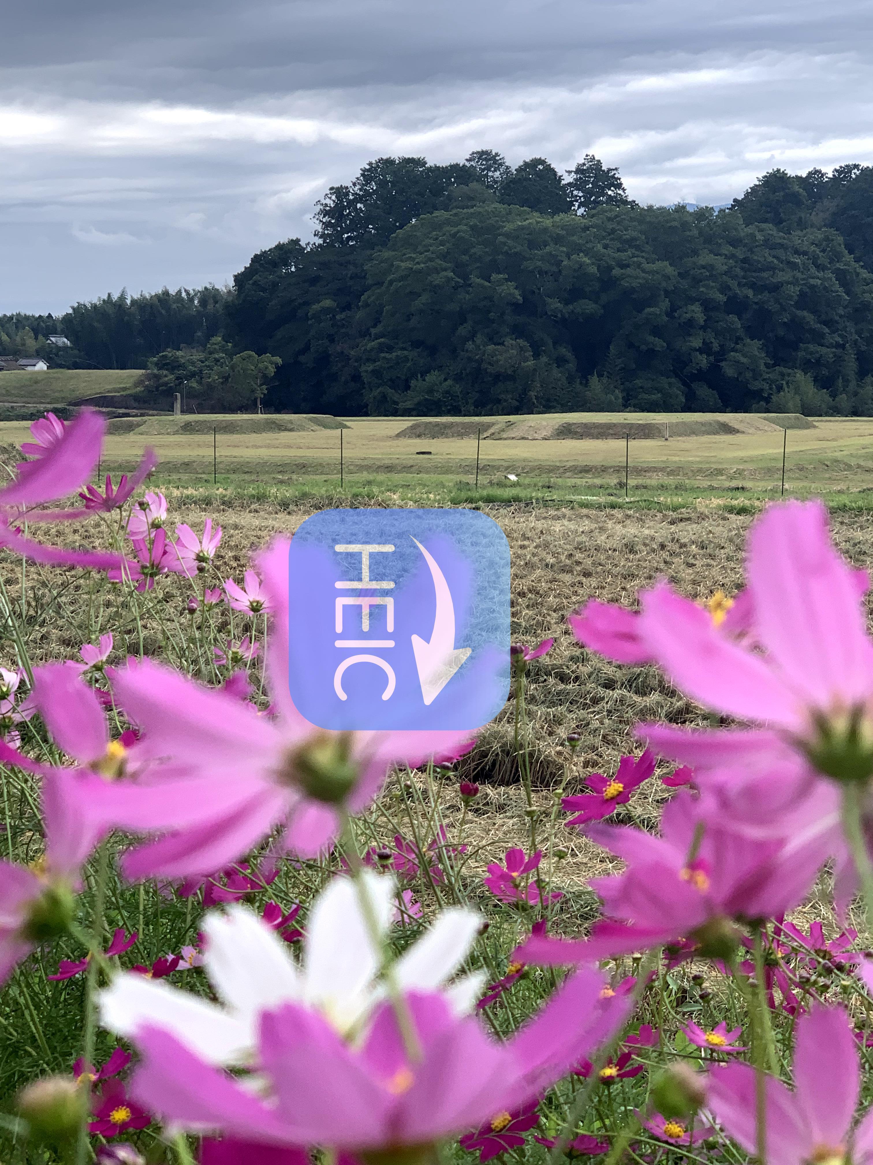 史跡になった古代寺院は多い。だが山田寺は周りを山と棚田(たなだ)と、近世の村の雰囲気を残す集落に囲まれ、余計なものがほとんど見えない。そして寺跡に立つと、飛鳥時代から近世に至る歴史と景観が調和よく残されているのに気づくはずである。このどこにもない眺めがにコスモスがいろどりをプラスするという。しかも車椅子でも。このコスモスと歴史の舞台をひそかに独り占めする。そんな一瞬を共有できればと思います。