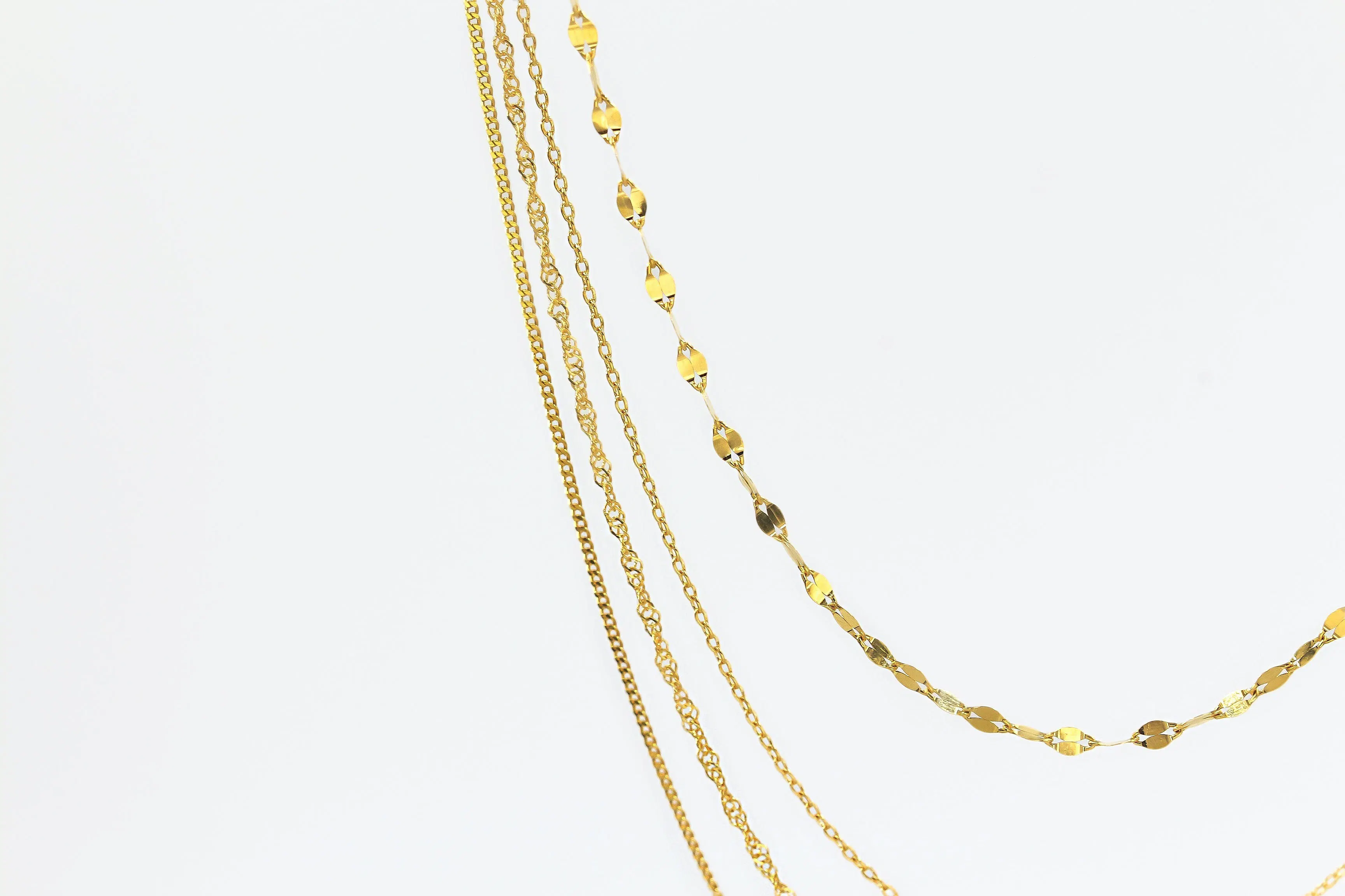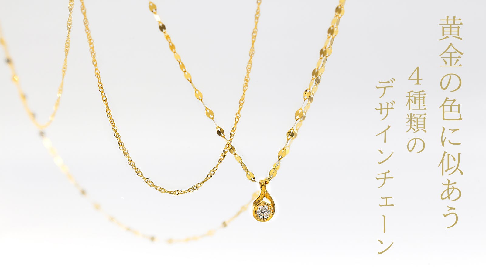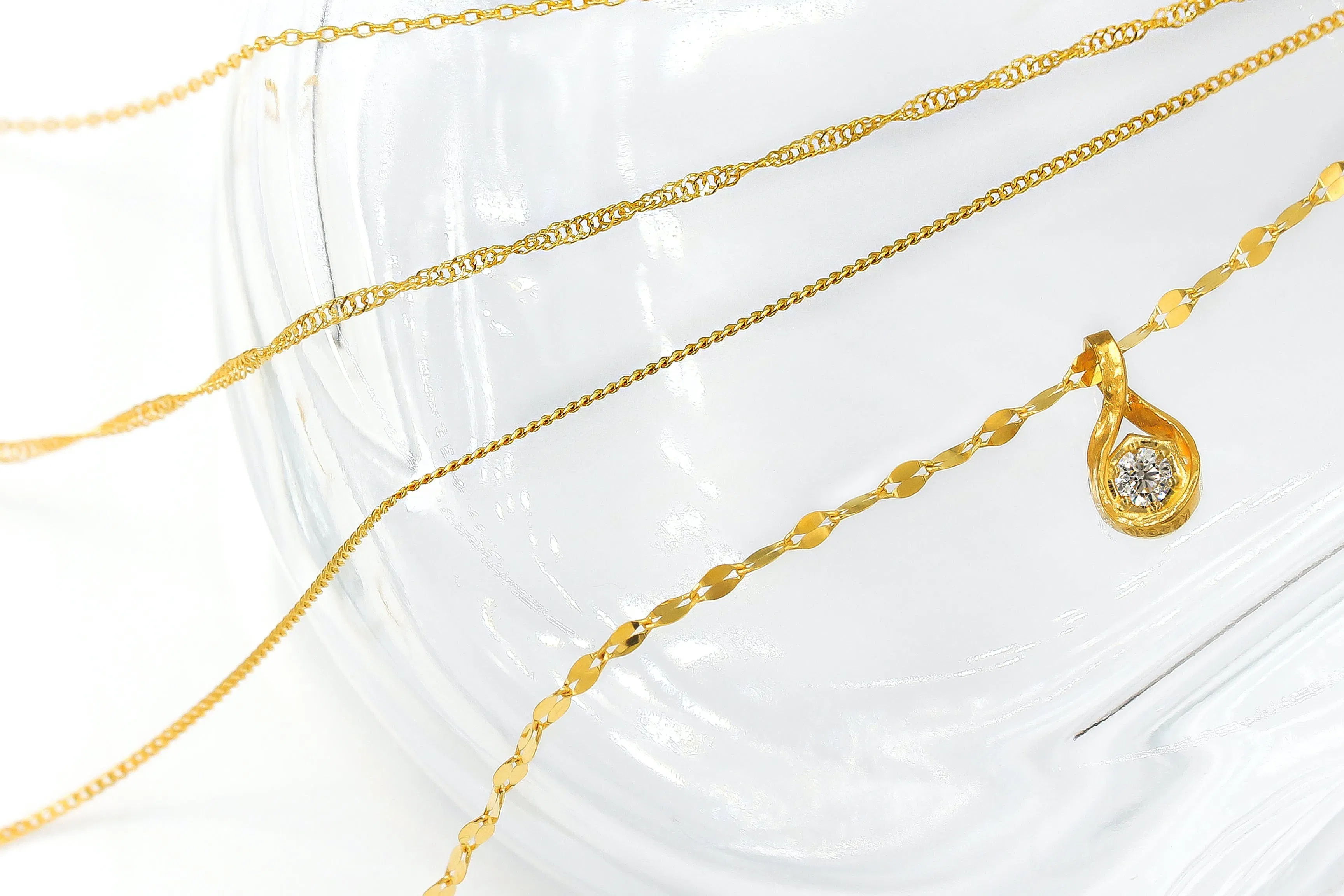 今回は、「K24純金」の黄金色が映える、4タイプの「純金のチェーン」をご用意しました。