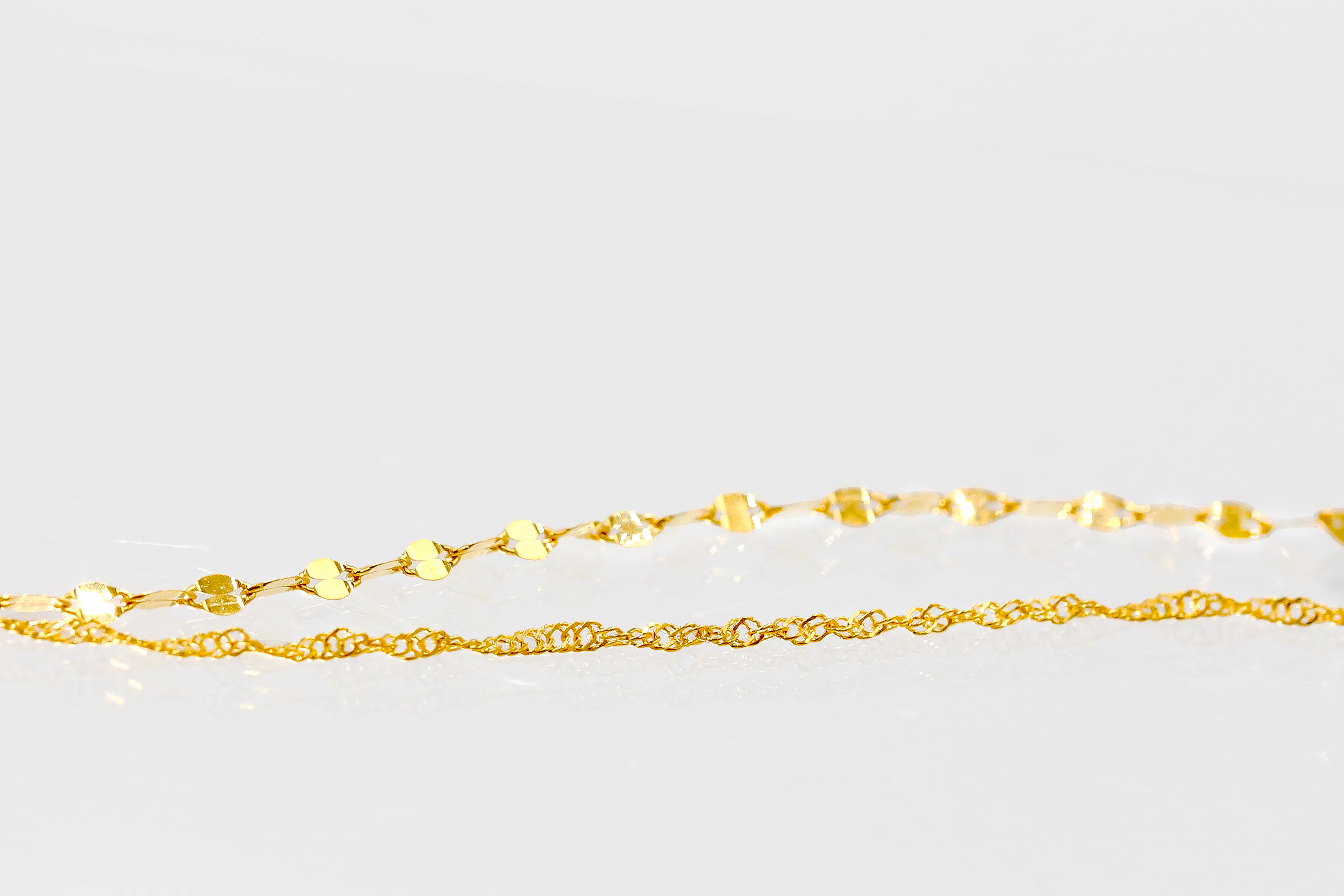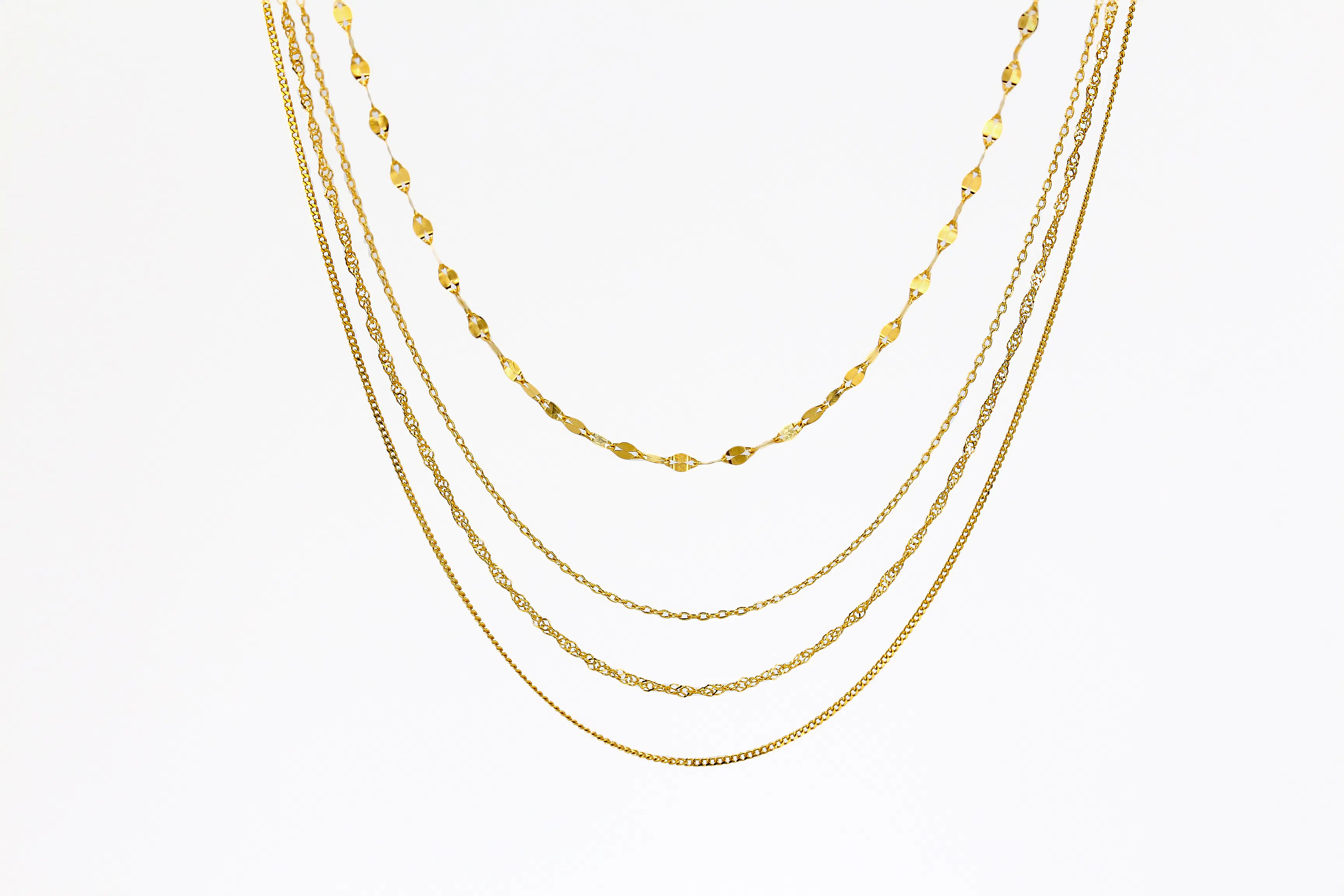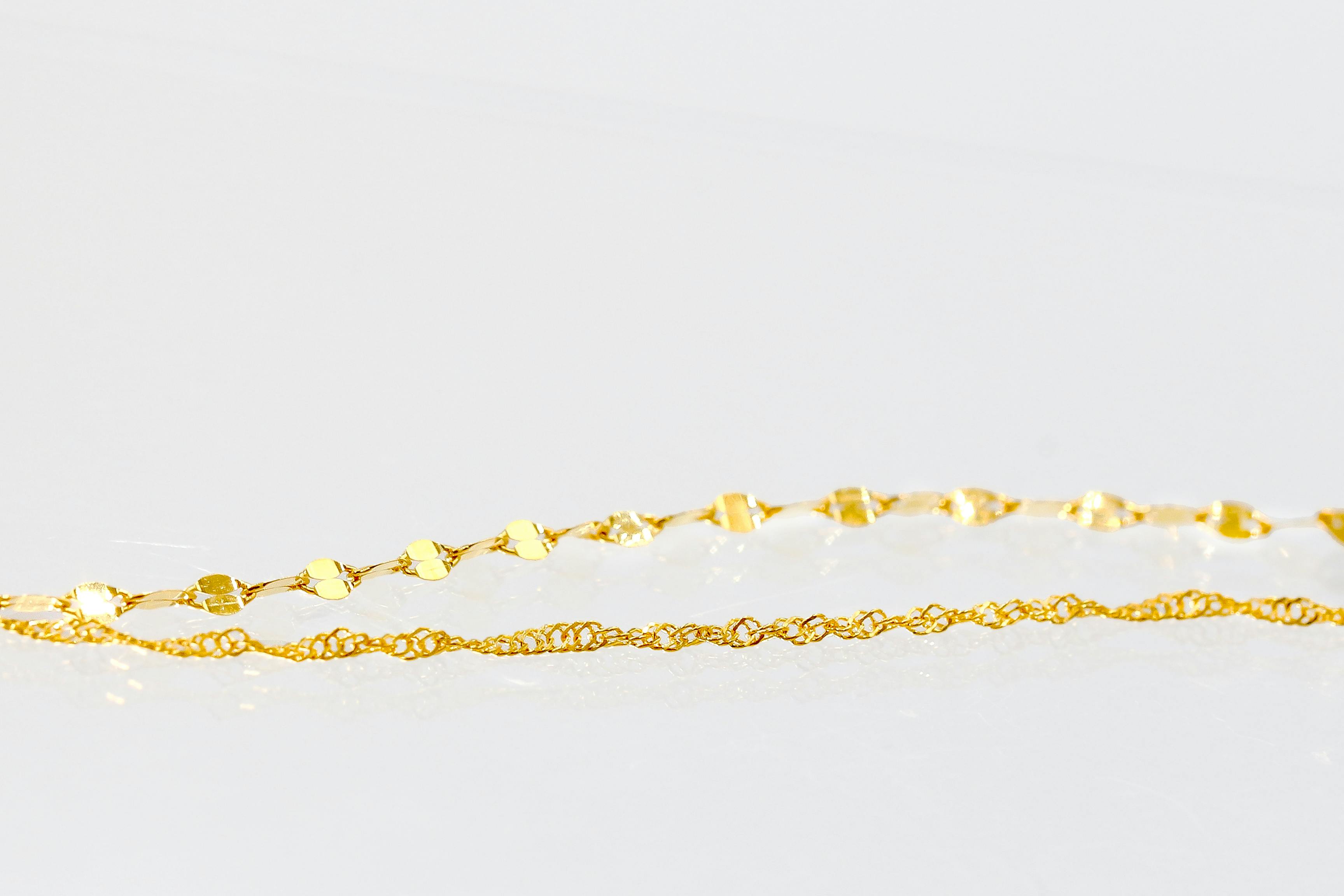 今回は、「K24純金」の黄金色が映える、4タイプの「純金のチェーン」をご用意しました。