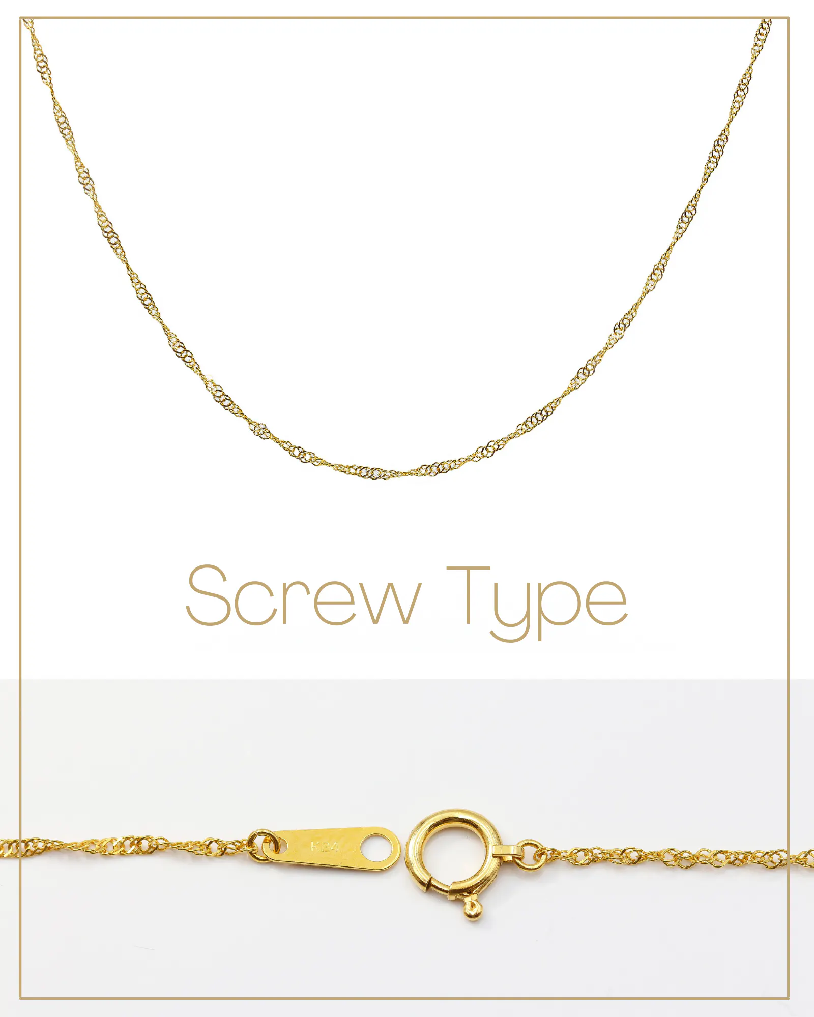 らせん状にひねったチェーンは光を反射する部分が多く、同じ太さのチェーンの中でもひときわ輝いて見えます。