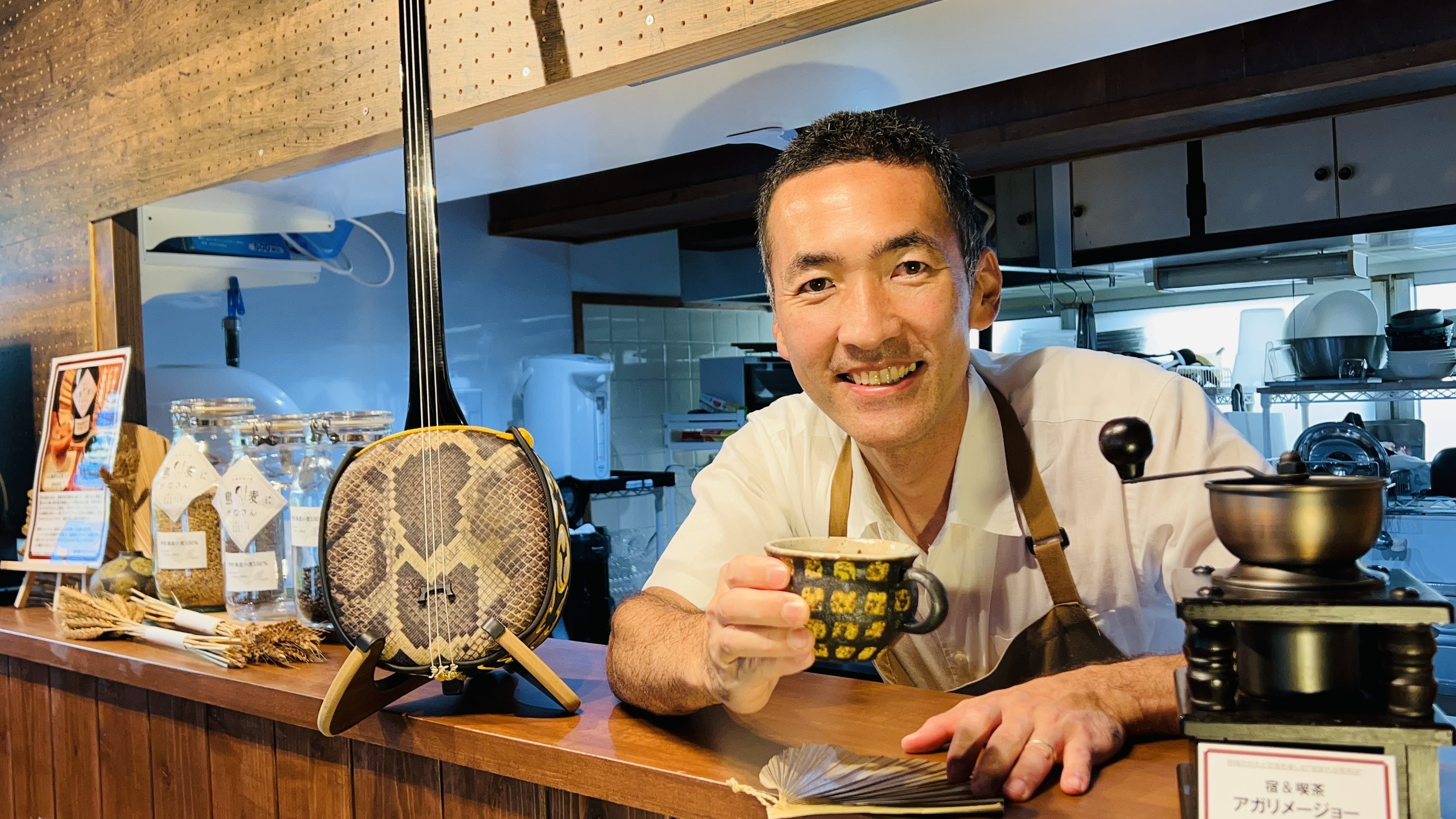はじめまして。プロジェクト主催者の眞榮里良人(まえざと よしひと)と申します。僕の生まれ育った場所、沖縄県うるま市勝連平敷屋(かつれんへしきや)で宿と喫茶店を営んでいます。店名は眞榮里家の屋号である「アガリメージョー」です。【地域の文化を楽しむ】をコンセプトにお店をやっています。