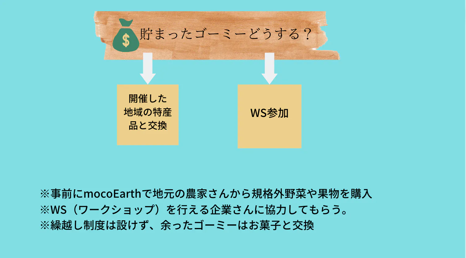 ③ゴーミーを貯めて開催地域の特産品やいろんな企業のワークショップを体験できるようにすること