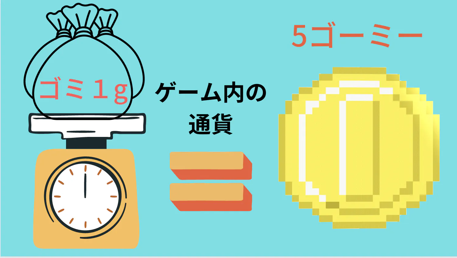 ゲーム内の「MEGANE BANK」で1gのゴミを5ゴーミーとしてゴーミーを発行します。