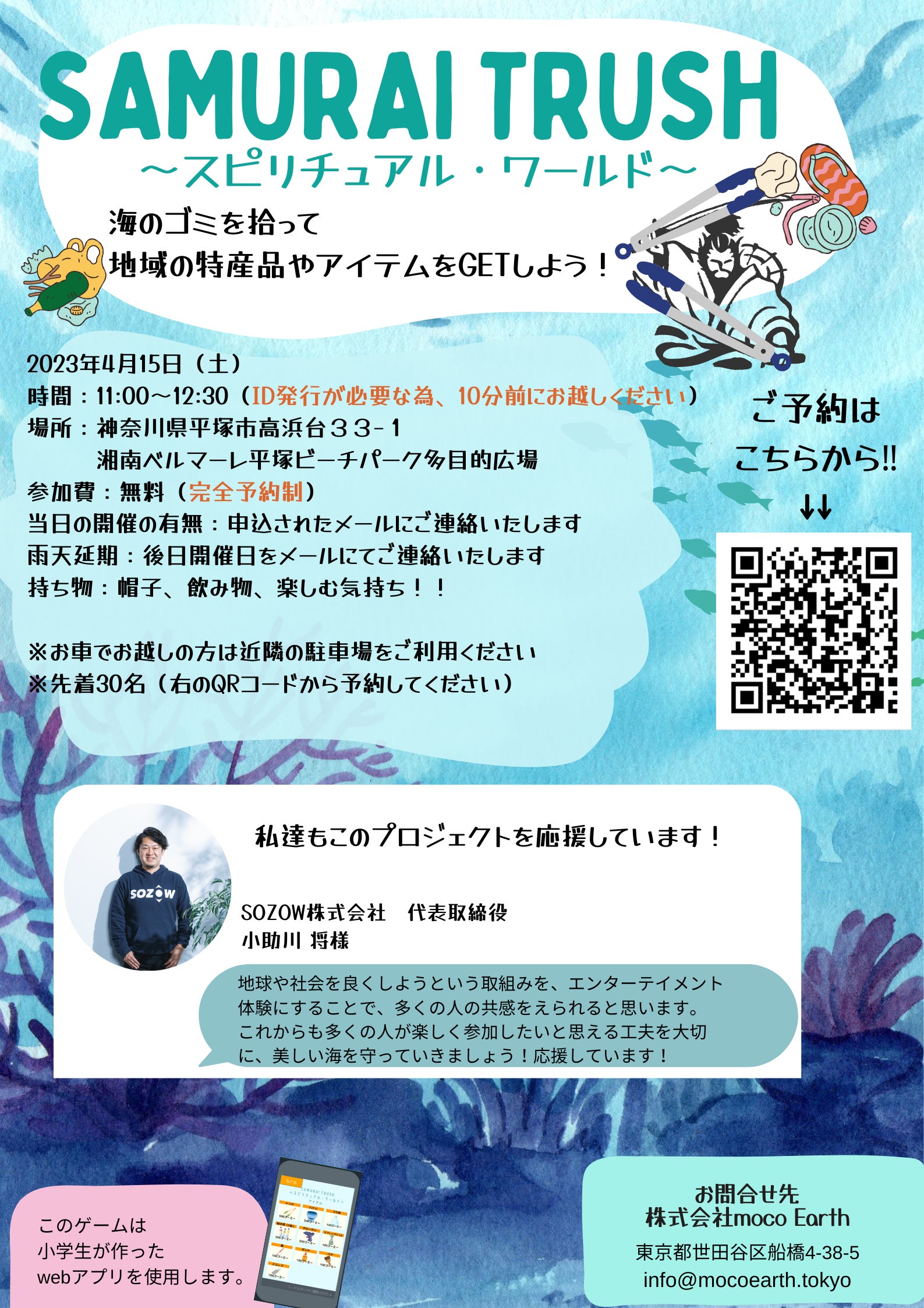 サムトルを安心安全に行うために、先着30名完全予約制とさせていただきました。