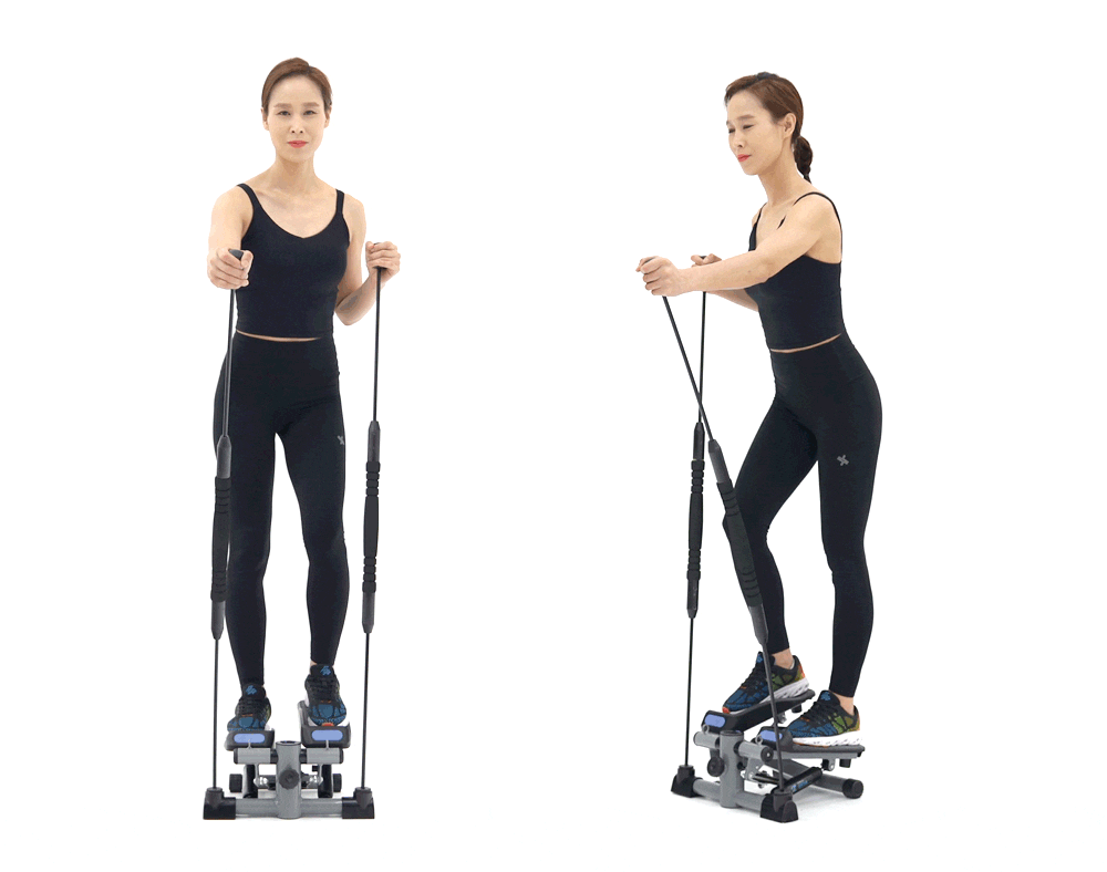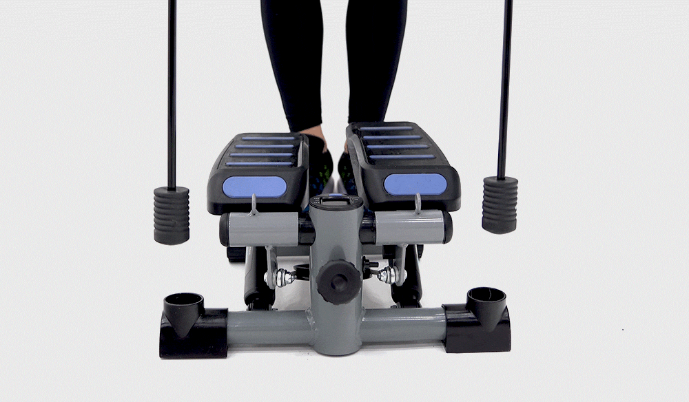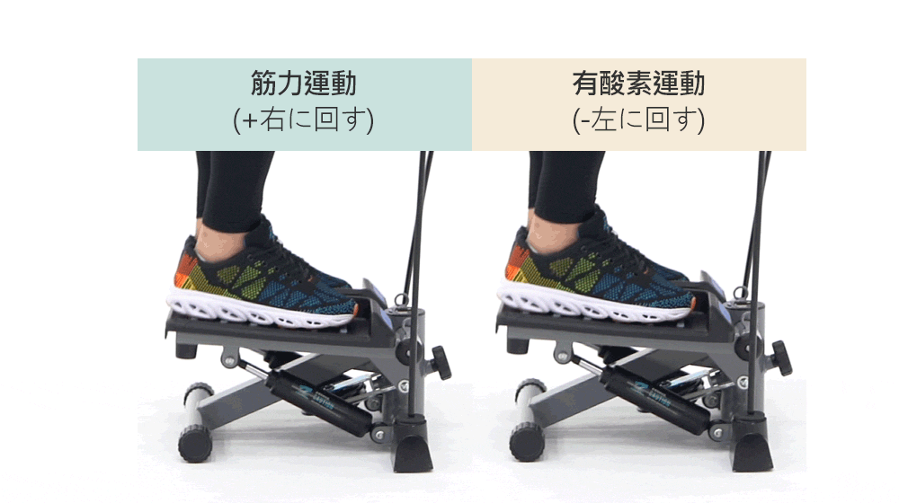 取っ手のない一般のステッパーは下半身運動のみ可能ですが、このように取っ手があることで上半身運動も追加可能ですので相乗効果抜群です。