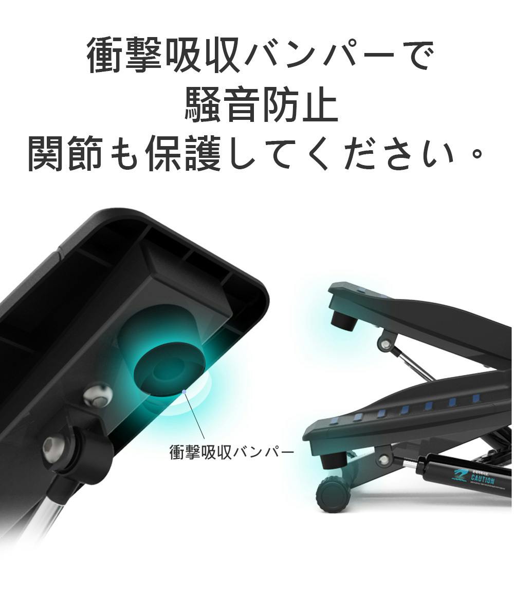 ステッパーの踏み台底部分に衝撃吸収バンパーがあります。また、運動時に膝関節を保護するだけでなく、騒音を緩和する効果を持っています。