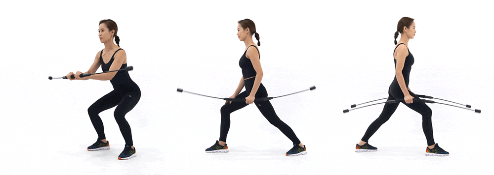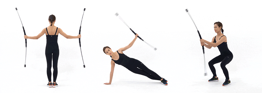 フレキシバーを取っ手として使うことで取っ手に寄りかかって運動効果分散になる状況を防止し、上半身も最小限のバランス運動ができるようにしました。