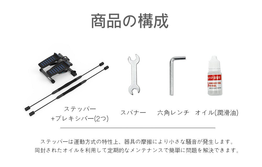 パッケージに含まれるもの:ステッパー、フレキシバー、組立部品、マニュアル