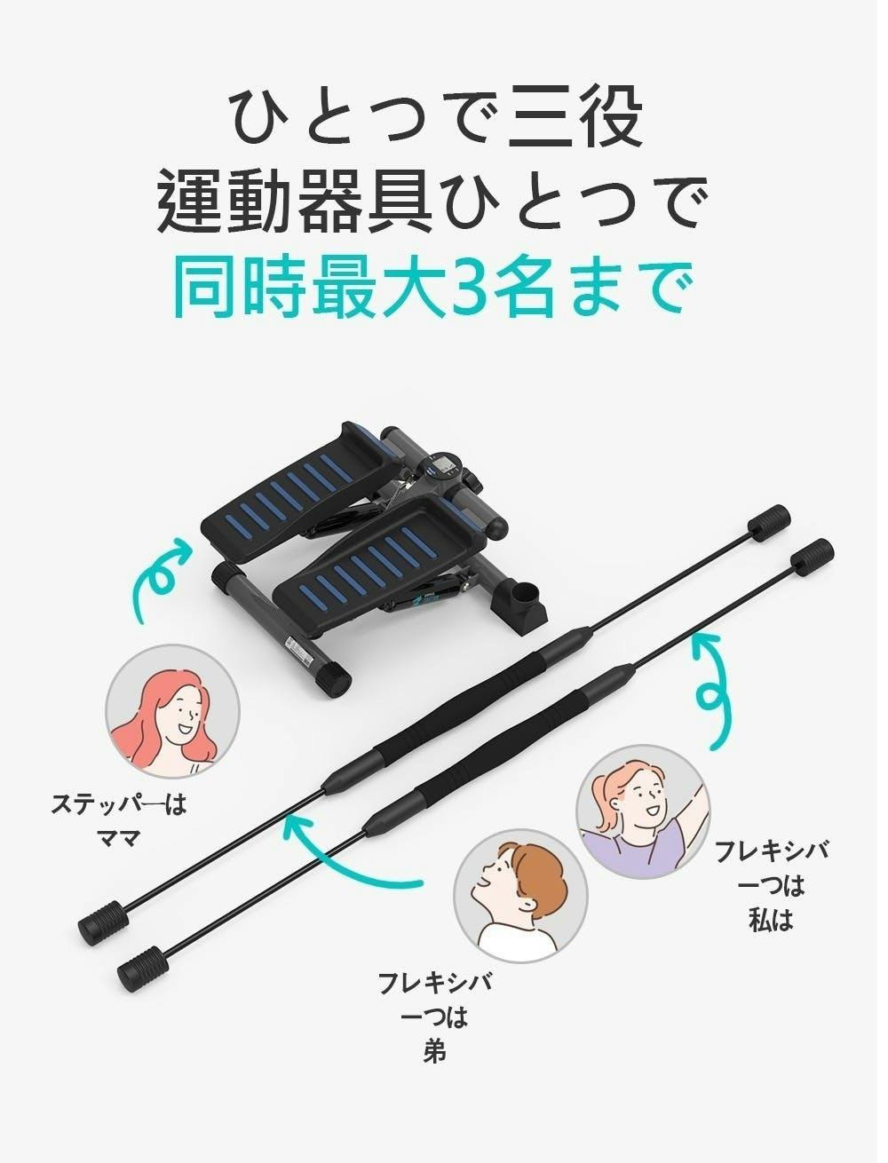 また、ステッパー+フレキシバー取っ手2つで最大3人まで運動できます。