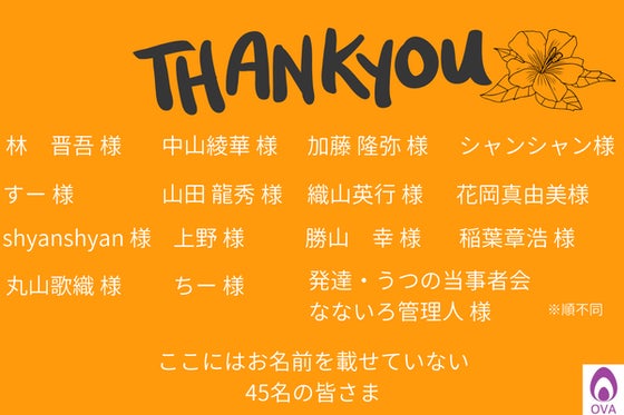 クラウドファンディングでご支援を頂いた皆様の、お名前の掲載を開始いたしました!