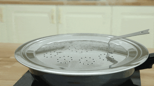 フライパンで調理する際、蓋を使用せずに料理をすると油がはねてキッチンが汚れてしまいます。そこでガラスの蓋を使うと、調理時に発生する水蒸気が蓋によりうまく排出されず、フライパンの内部に水が溜まってしまいます。その状態で魚料理や焼き物をすると水と油が混ざり合い水気の多い料理になってしまいます。