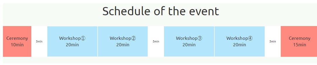イベントはまずオープニングセレモニーを10分ほど行った後、全世界から集まったプレゼンターによるワークショップが開かれます。ワークショップは全部で4回受けることができます。先日プレゼンターの募集を締め切らせていただきました。今回はデンマーク、メキシコ、スペイン、トルコ、カナダ、東ティモール、マレーシア、日本から合計26チームご応募いただきました。たくさんのご応募ありがとうございました。