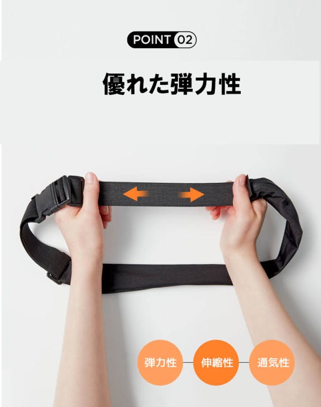 約40gの超軽量さ、まるで着用していないかのような感覚で体にかかる負担を減らし身軽に運動できます。長さの調節が可能で、誰でも気軽に着用できます。