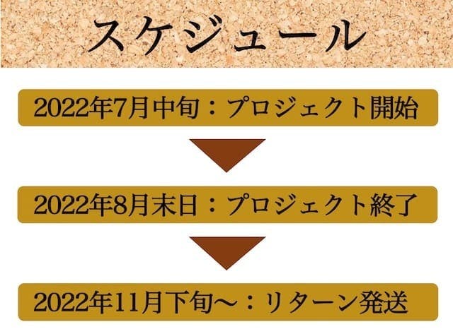 ※本文中に記載したスケジュールについては、あくまでプロジェクト公開時点の予定となります。ご支援数などが想定を上回った場合や、製造工程上の都合や工場の状況等により出荷時期が遅れる場合がございます。