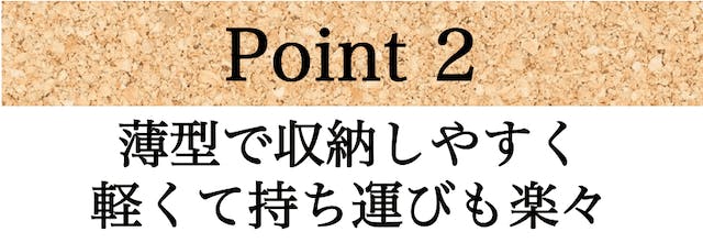 軽量薄型だから車に乗せても場所を取らずトランクやドアスペースなどの隙間にも収納可能!
