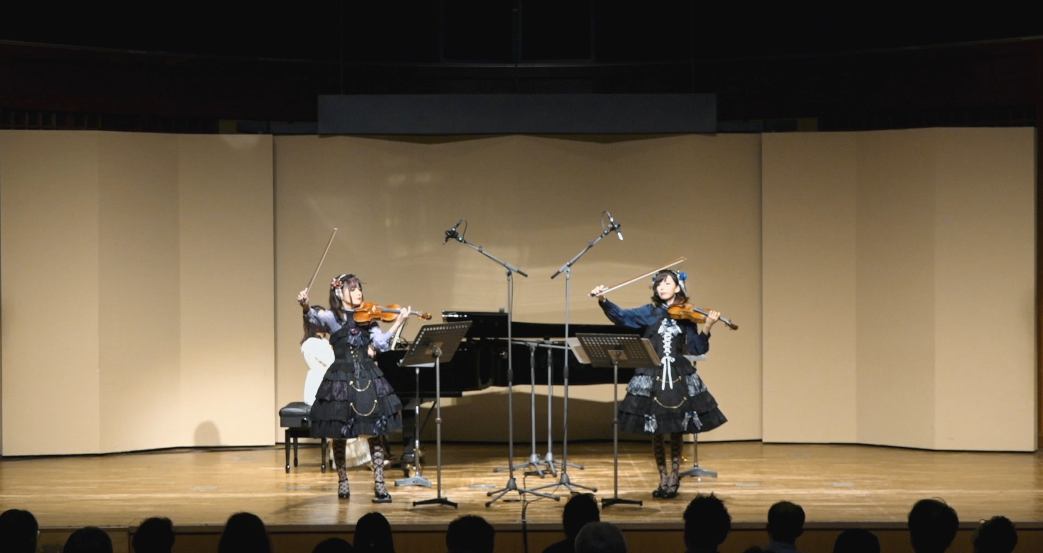 しかし去年一念発起し、ついにツインヴァイオリンのコンサートを、保谷こもれびホールにて実現させることができました。お洋服はAlice and the Piratesさんからご協力いただきましたが、ゴシック衣装が好きなJillさんと私にとりまして、これも大変光栄なことでございました。
