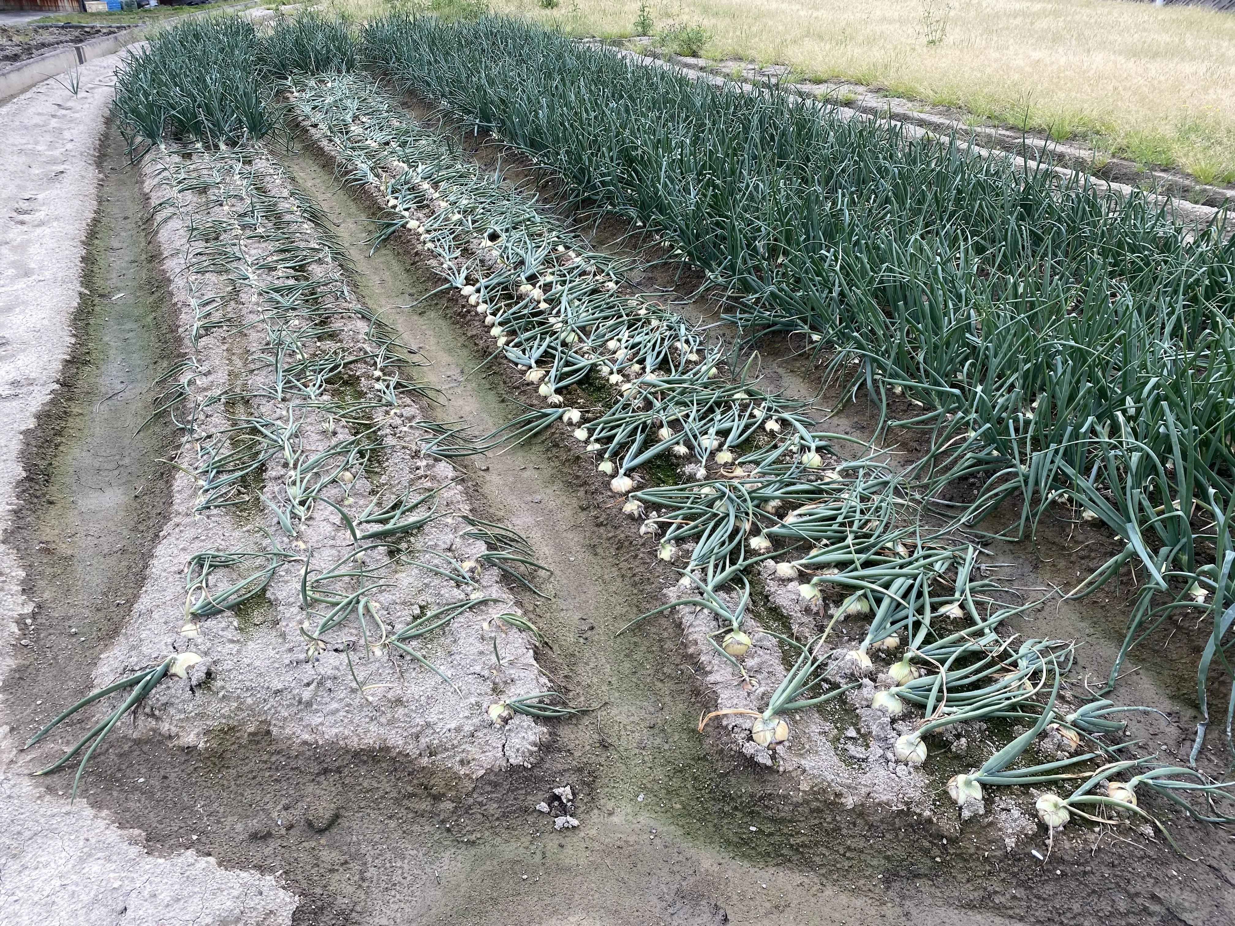 畑の玉ねぎの葉が倒れてから、10日から14日経って収穫します!