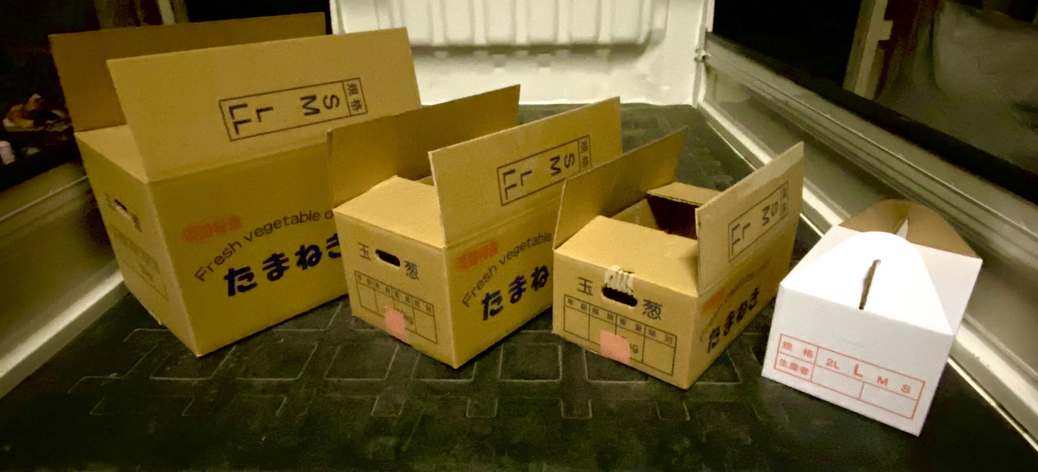 3キロコース以外のダンボールの箱には玉ねぎを入れて吊るす用の網を入れてありますので、良かったらご使用ください!