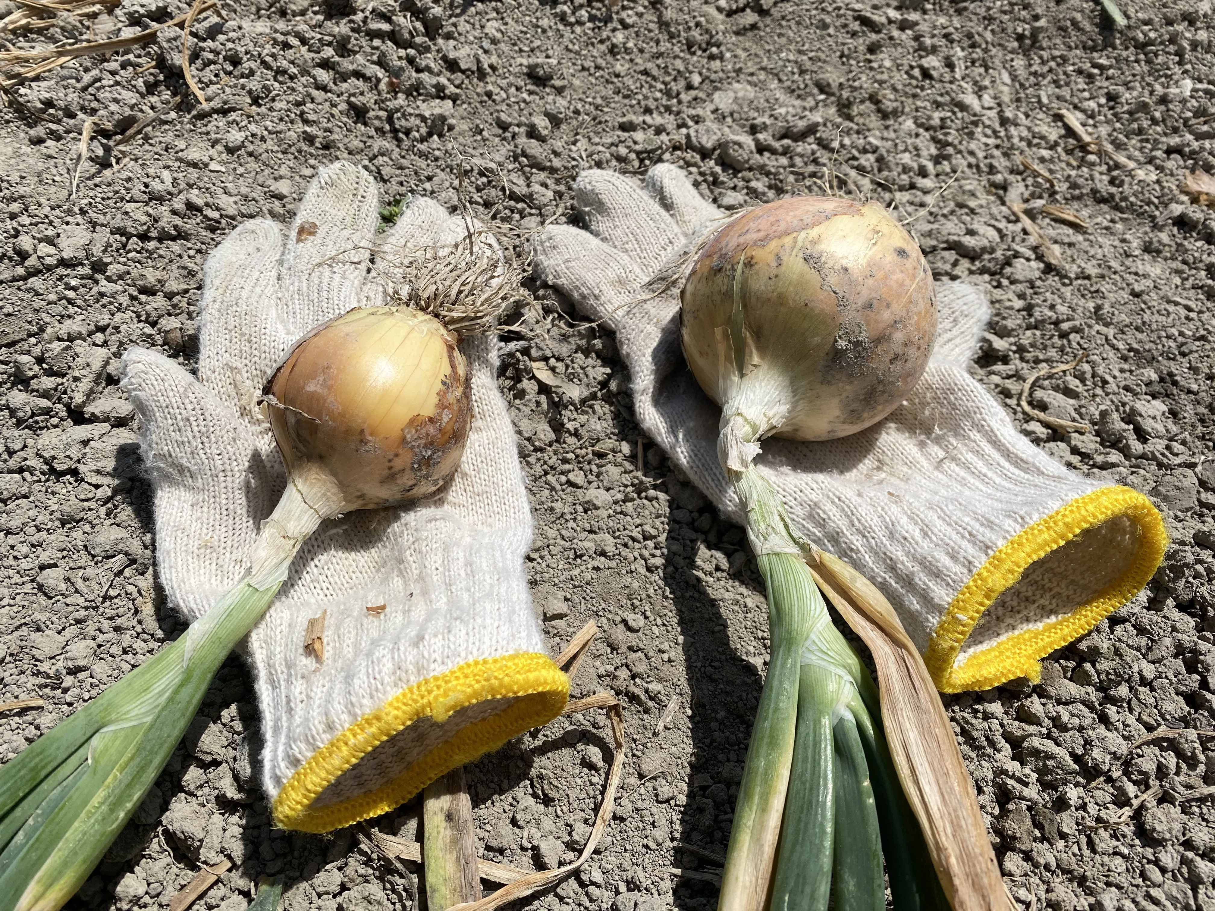 ・玉ねぎの収穫は、みんなで収穫して一つ一つ形を判別したり、中が腐っている物などを分けています!