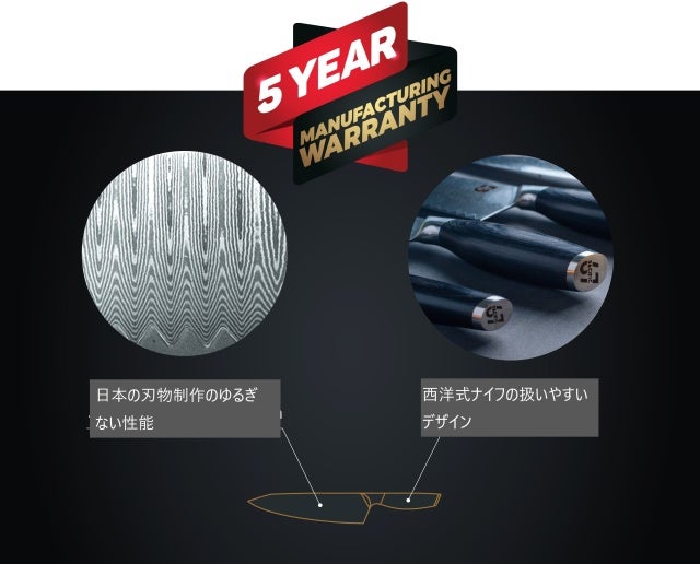 A. 5年のメーカー保証がございます。刃にゆがみがある、刃に傷がある、ハンドル部分に不具合があるなどの初期不良がある場合に新しいものと交換いたします。