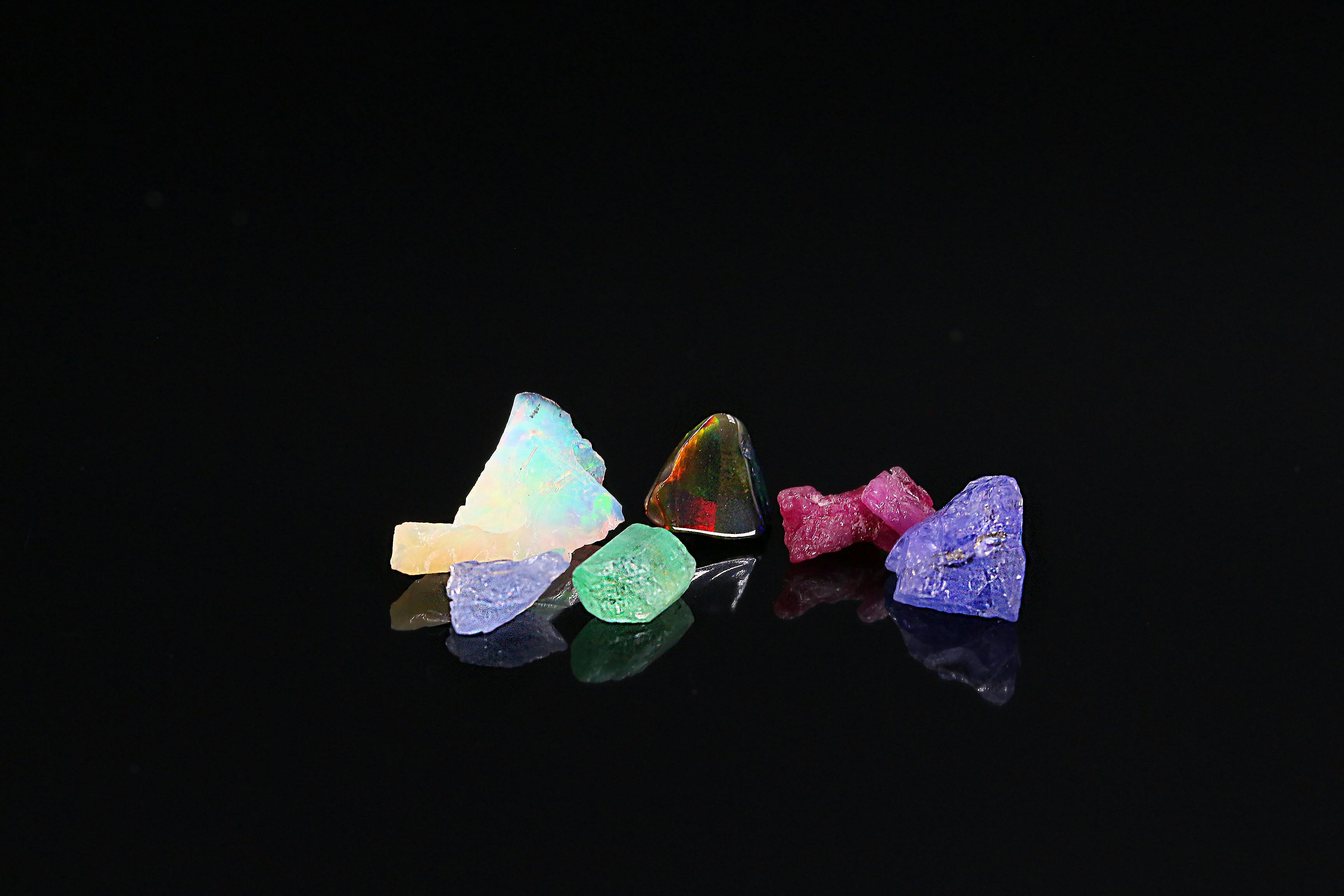 *画像 宝石の原石のお守り 「メキシコオパール」「ルビー」「ガーネット」「タンザナイト」「エメラルド」「ブルージルコン」