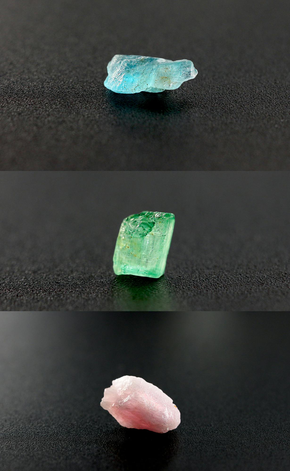 *画像 上から 「アパタイト」「ガーネット」「エメラルド」