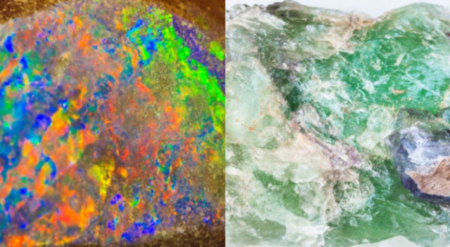 【游色効果のあるオパール、色が変わるアレキサンドライト】