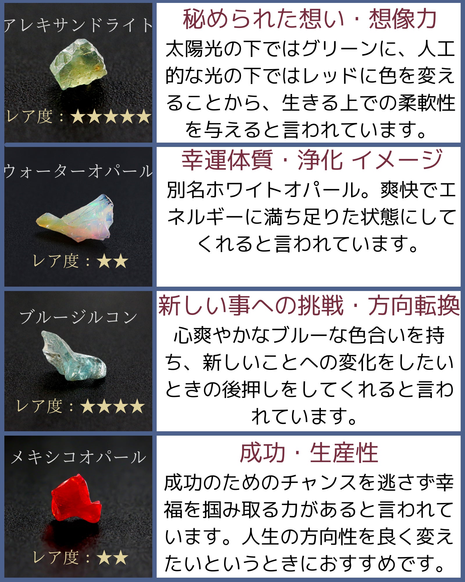 *画像 宝石の原石のお守り 「メキシコオパール」「ルビー」「ガーネット」「タンザナイト」「エメラルド」「ブルージルコン」
