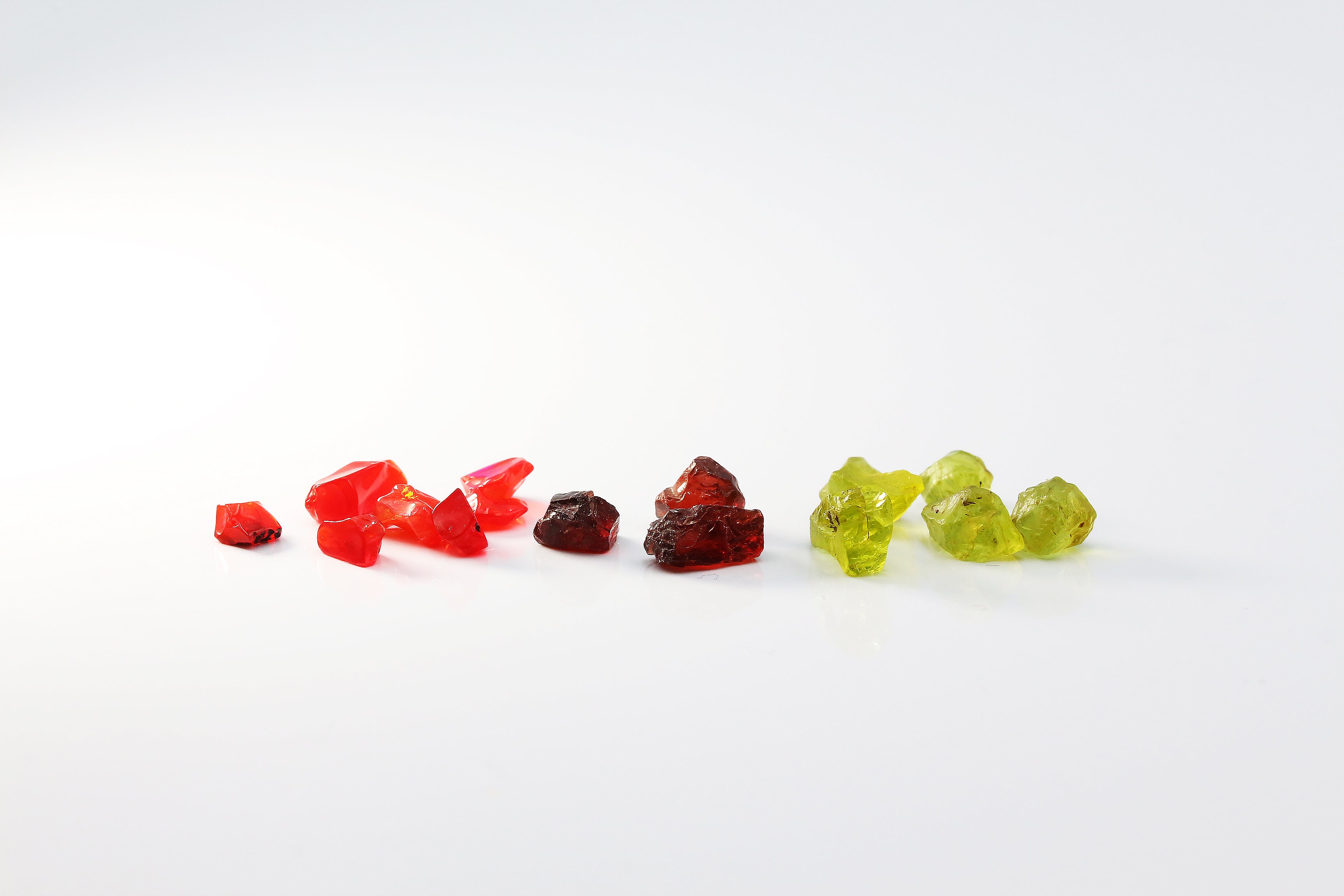 *画像 上から「ガーネット」「ペリドット」 下「ウォーターオパール」
