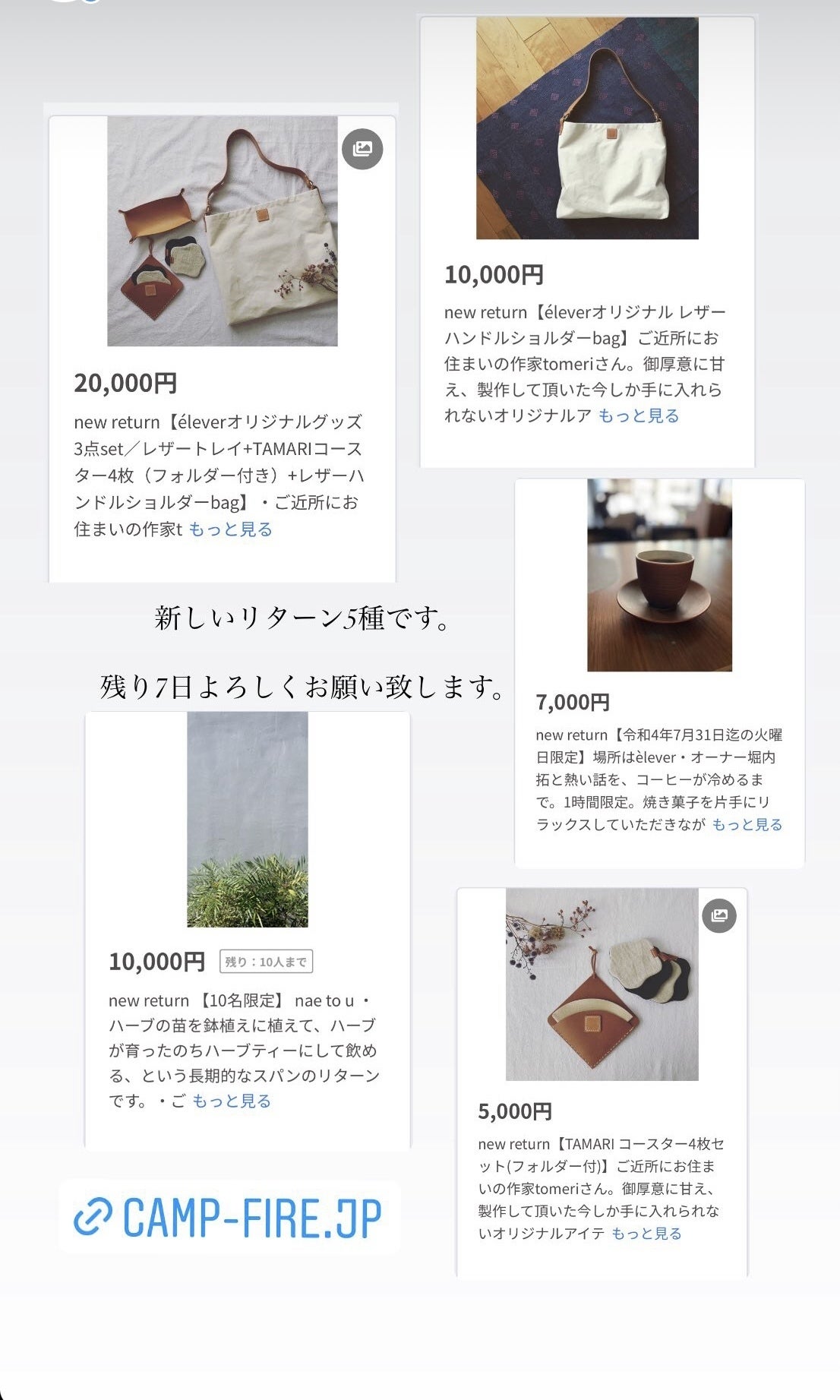 残すところ後一週間。悔いの残らぬよう。精一杯楽しんで。過ごそうと思います。本日21時からフルメンバーでは無いですがスタッフのご挨拶も兼ねてインスタライブをします。ご都合合えばご覧ください。残り一週間限定のリターンも準備しておりますのでよろしくお願い致します。