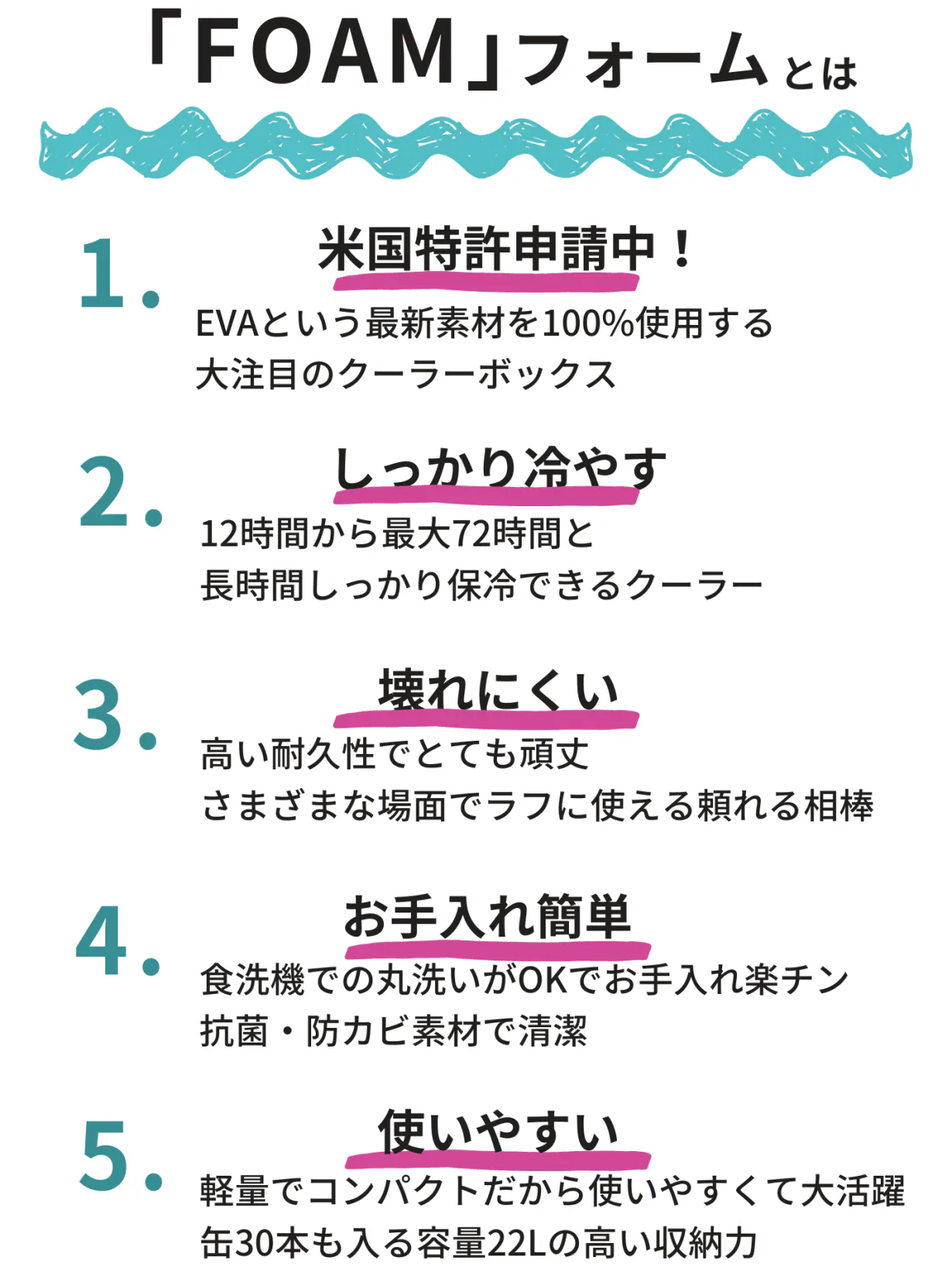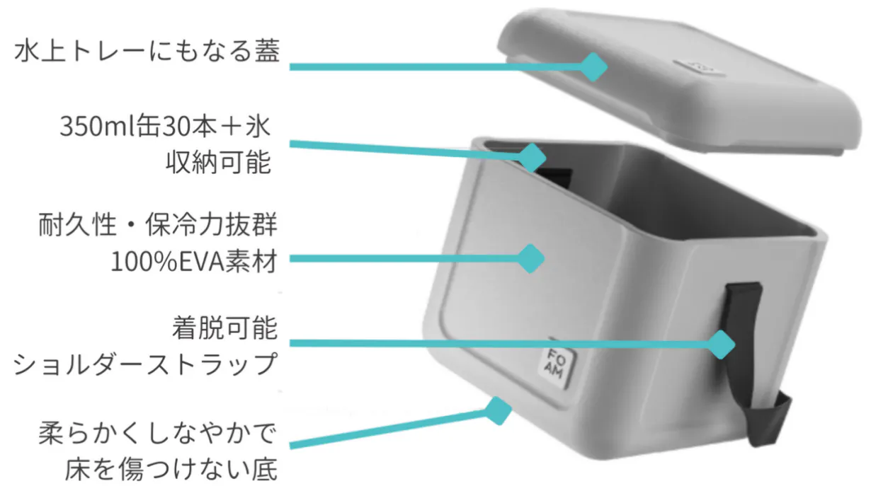 「FOAM フォーム」は、ハードクーラーボックスのような重くて倉庫にしまいっぱなしになるような重量ではなく