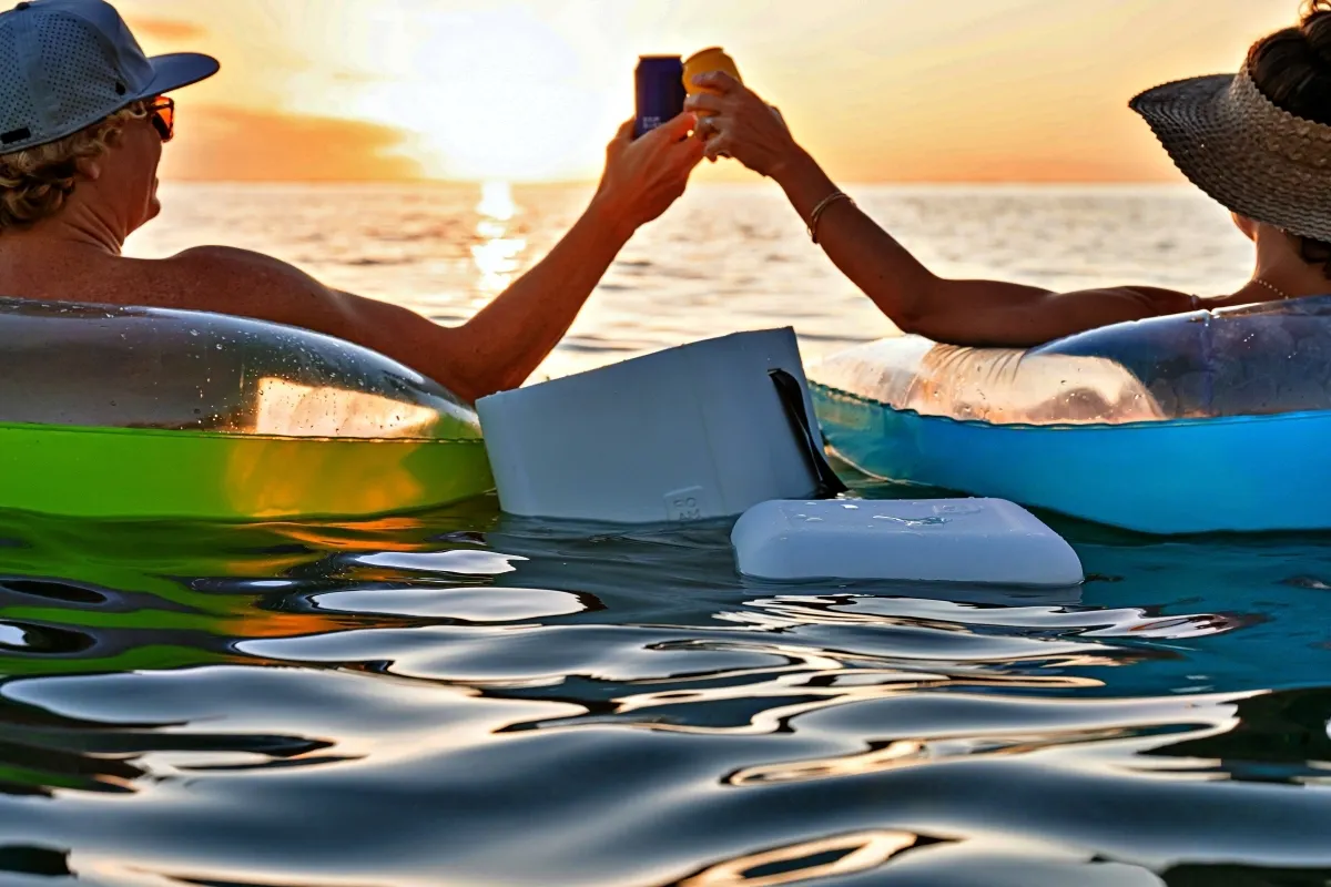「FOAM フォーム」は水に浮くので、蓋をトレーがわりに冷たい飲み物を水中でも楽しめます!