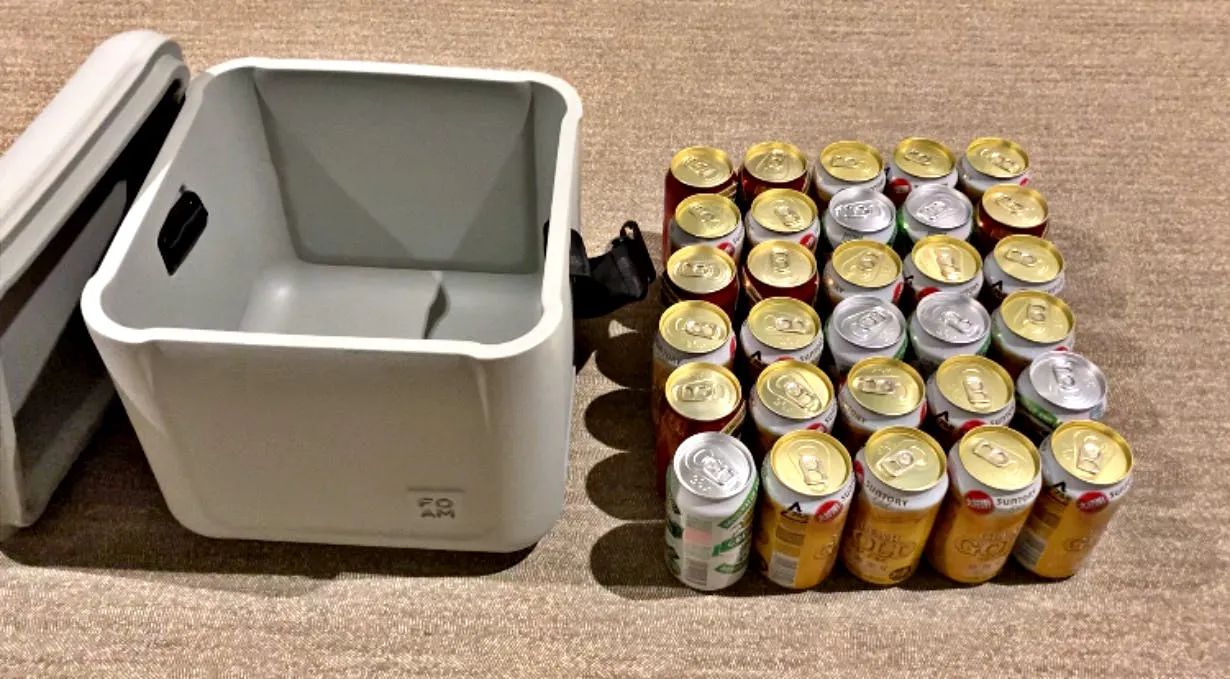 この時点で飲み物の重量350ml × 30本 =10,500ml分とFOAM自体の重量1.75kgで合計約12キロ!