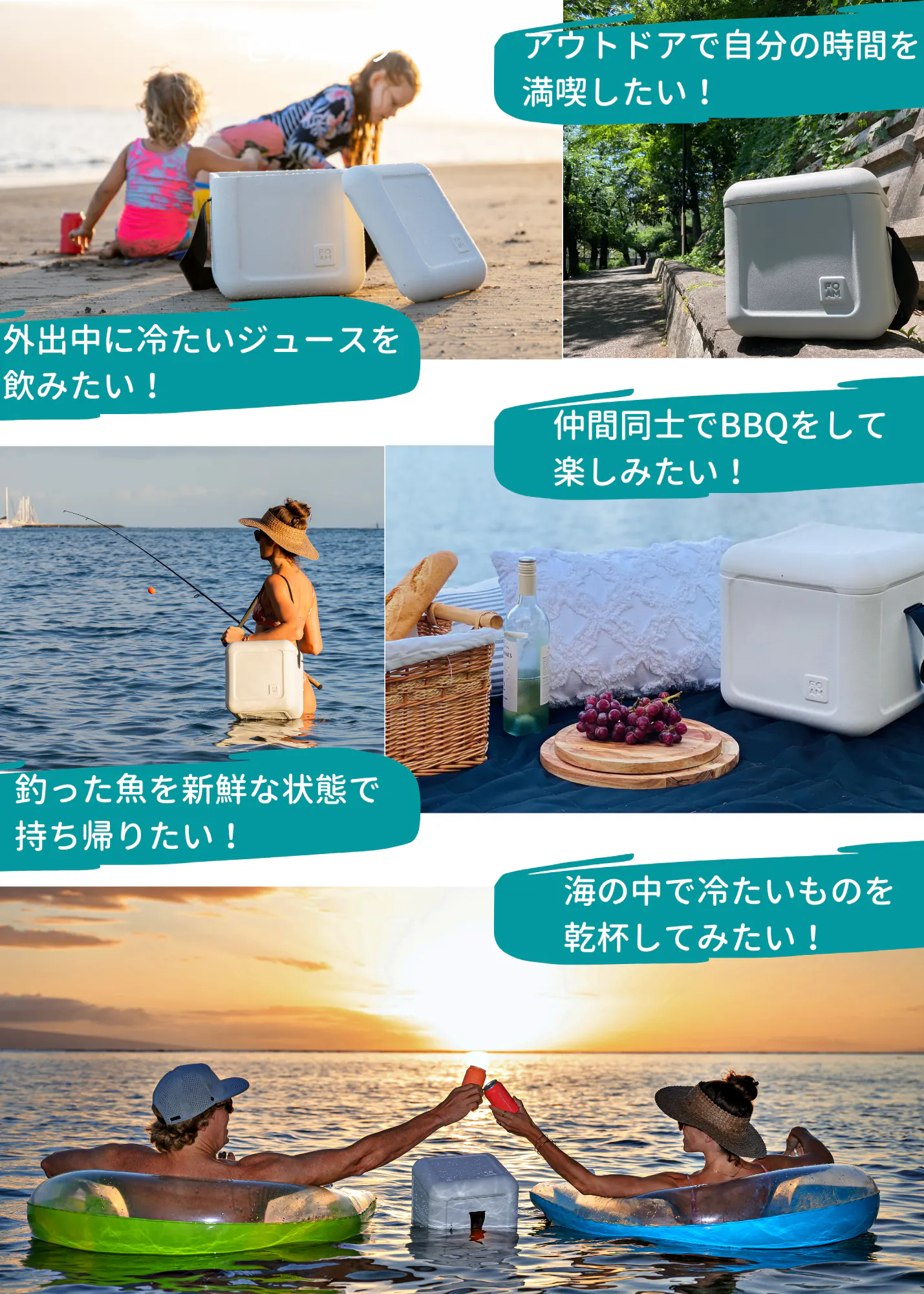 私はずっと日本に興味があり、今年の夏には日本に行く予定です。この旅のためにリサーチしているうちに、日本市場でこのFOAMが必要とされていることを知りました。 ほとんどのクーラーボックスはサイズが大きすぎ、値段も非常に高いです。 FOAMは軽量でコンパクト、そして耐久性があり、街や公園、アウトドアへの日帰りや一泊旅行に最適です。アメリカの私たちの顧客と同じように、日本の皆様にもきっとFOAMを気に入っていただけると思います。」
