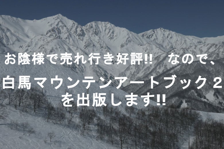 この「白馬マウンテンアートブック2」の写真は、表紙カバーデザイン途中のカラーコピーを、前作の本に被せて撮影しました。色味、デザインは若干変更されます。前作と同じサイズで制作しますので、本棚での見栄えも良いと思います。