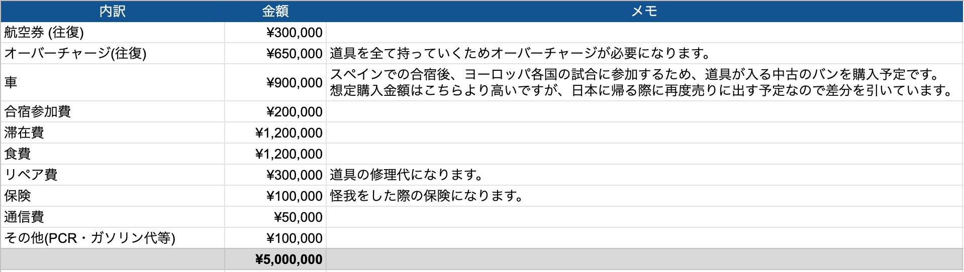 そのため、今回の目標金額は300万円に設定させていただきました。