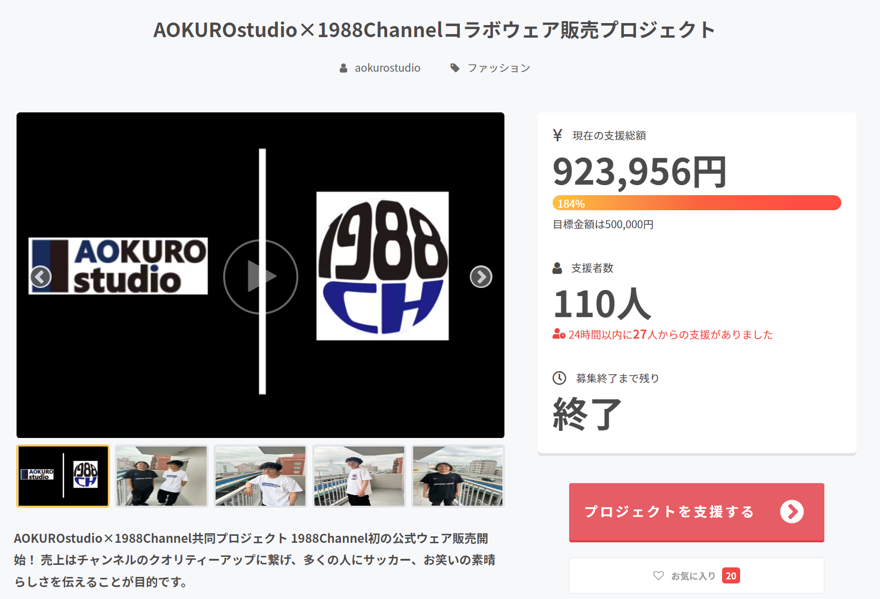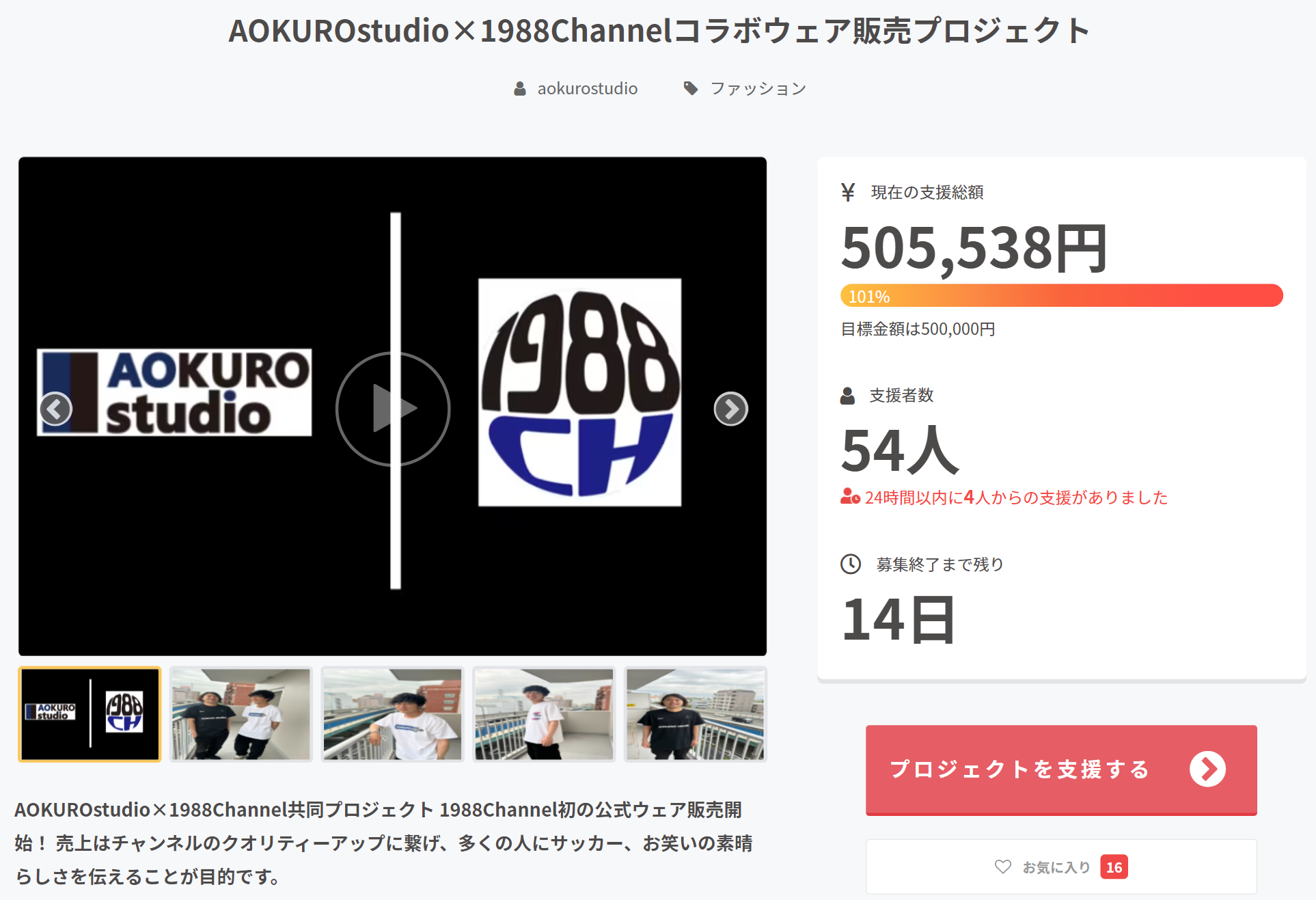 初のコラボウェア販売で得た収益は今までの感謝の意味を込めて、1988channelの活動拡大の資金として使用し、皆さんと共にこれからの1988Channelを支えるプロジェクトにしていきたいと思っています。